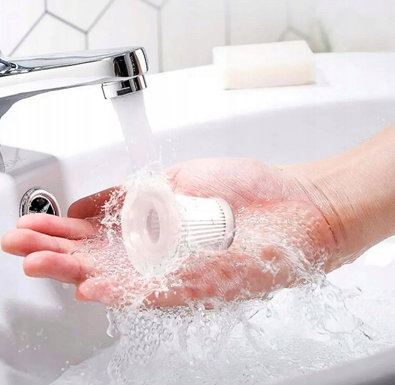 - Фильтр и всасывающие насадки можно мыть, что помогает поддерживать чистоту устройства, а отсутствие необходимости замены фильтра является экологическим решением, спасающим нашу планету.