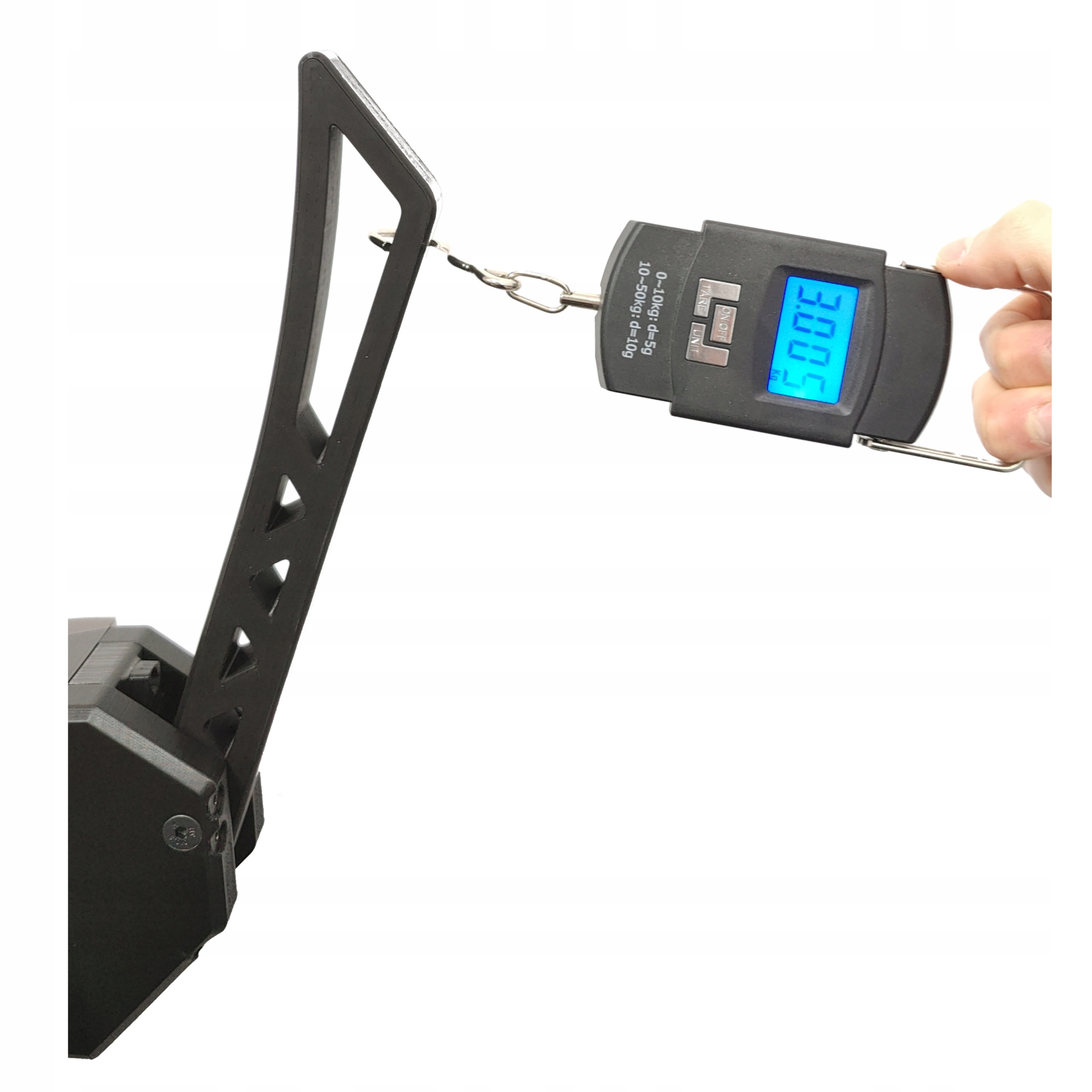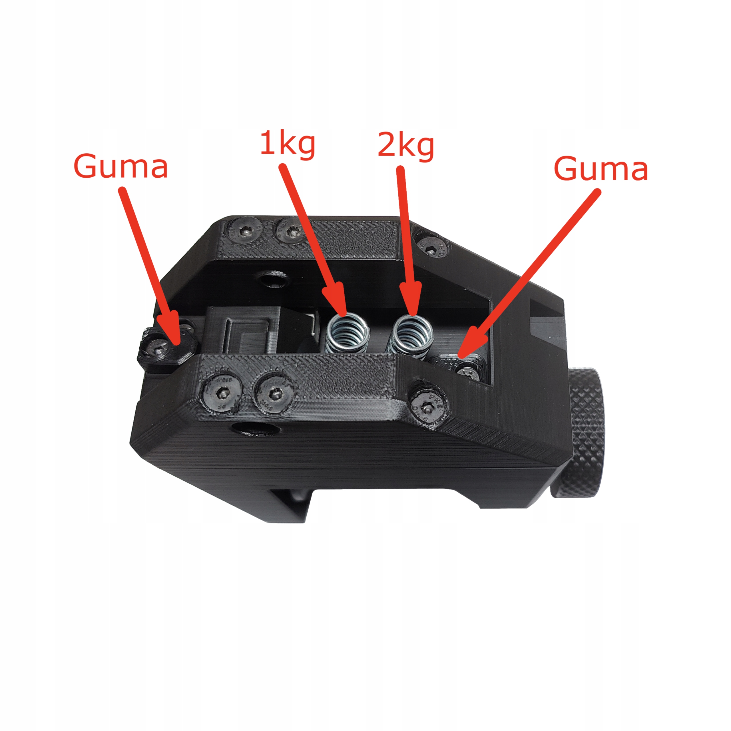 Тормоза устанавливаются по умолчанию, 2 пружина, чтобы поднять лапу до конца, вам нужно использовать силу около 3 кг, пружины можно удалить и адаптировать силу тормоза к вашим потребностям. В соответствии с тем, что показывает фото, необходимая необходимая сила может быть установлена от 1 кг на 2 кг до 3 кг