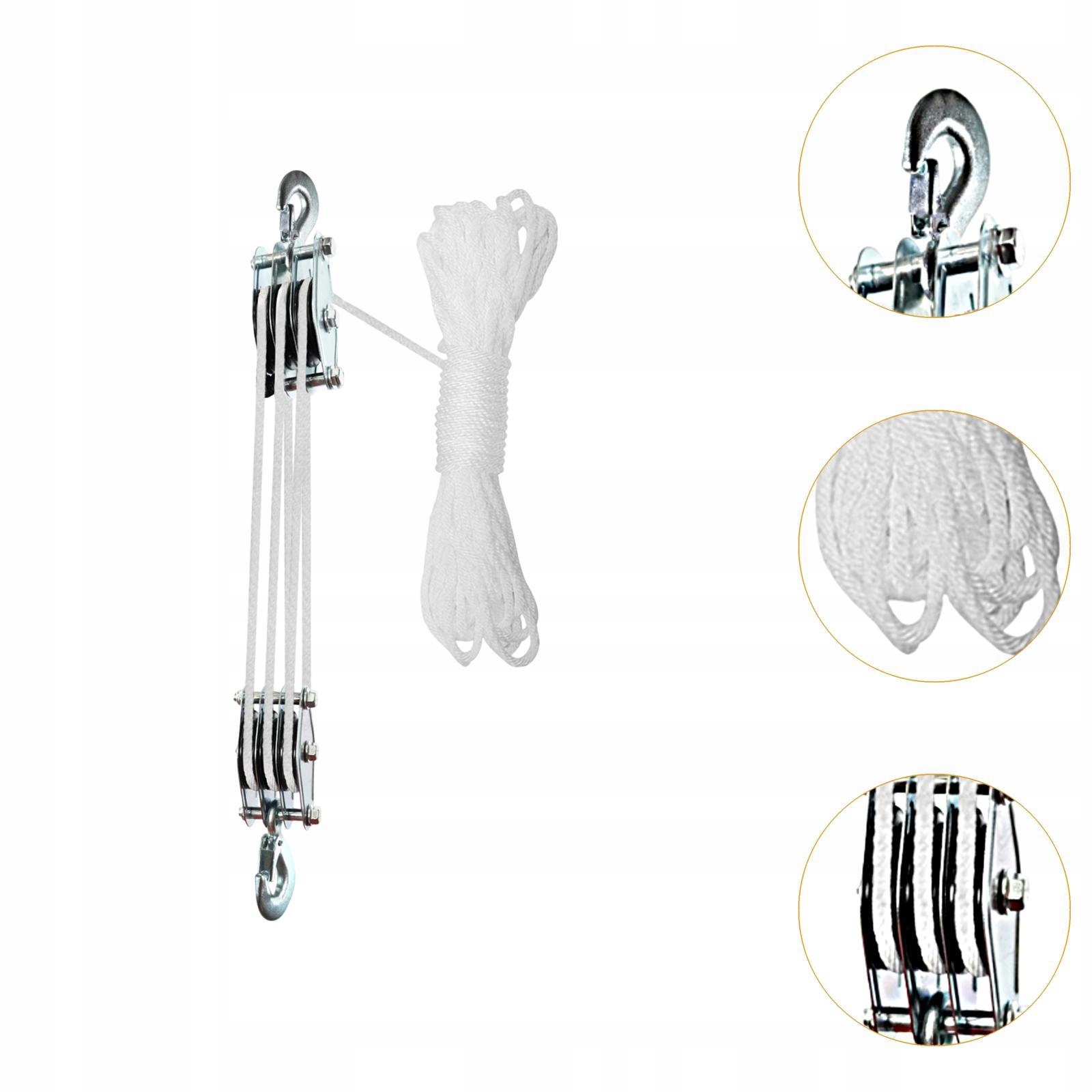 Спецификация: длина веревки 15 м/590,55 дюйма/49,21 фута, номинальная грузоподъемность 200 кг, подъемная сила 6: 1
