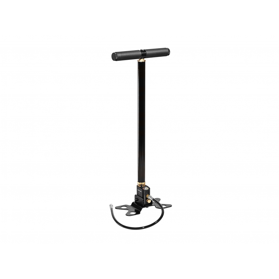 Безопасность - прибор оснащен точный манометр со шкалой от 0 до 250 бар и выпускной клапан, позволяющий заполнить баллон пневматического пистолета и безопасно отсоединить заправленный картридж от насоса. Всегда ослабляйте клапан давления перед отсоединением насоса от картриджа. Невыполнение процедуры ослабления может привести к повреждению уплотнений. Устойчивое и регулируемое основание насоса обеспечивает безопасное использование насоса во время накачивания.