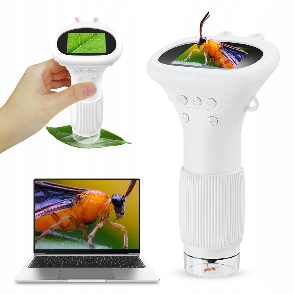 Цифровой микроскоп имеет встроенную память, которая может содержать до 400 фотографий без карты памяти. Тем не менее, вам следует поместить карту памяти TF (не включенную в набор) для записи фильмов. Дети в возрасте 3 лет могут в любое время сэкономить свои открытия и испытать результаты и легко делиться ими с семьей и друзьями.