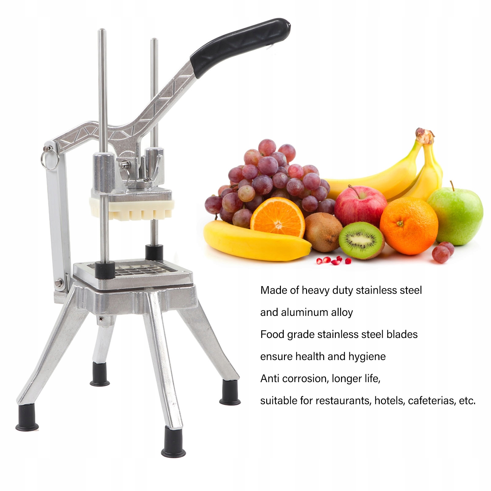 1. Сплав из нержавеющей стали и алюминиевого сплава: овощ и фруктовый слайлер изготовлен из прочного из нержавеющей стали и алюминиевого сплава, а также лезвия из нержавеющей стали, предназначенные для контакта с пищевыми продуктами, обеспечивают здоровье и гигиену. Четыре лезвия: ручная овощ и фруктовая отбивка оснащена четырьмя лезвиями, 1/2 дюйма 3/8 дюйма 1/4 дюйма и лезвием с 8 частями, так что вы можете разрезать овощи и фрукты на разные размеры и чертополох в зависимости от ваших потребностей. Ручка -выталкивания: эргономичный картофельный рисунок для жарки и выдвижной ручки Используйте принцип рычага, чтобы сэкономить время и работу. Съемная и подходящая для мытья: картофельная вертолет с картошкой фри. Четыре не -скользящие ноги устойчивы к износу, сильной, амортизирующей, не -сластической и без запаха. Лезвие и блок давления могут быть удалены и промыты, есть ATM для очистки и технического обслуживания. Коррозионная устойчивость: ручная овощная и фруктовая измельчитель является долговечным и устойчив к коррозии, что обеспечивает высокую жизнь, подходящую для ресторанов, отелей, кафе и т. Д.