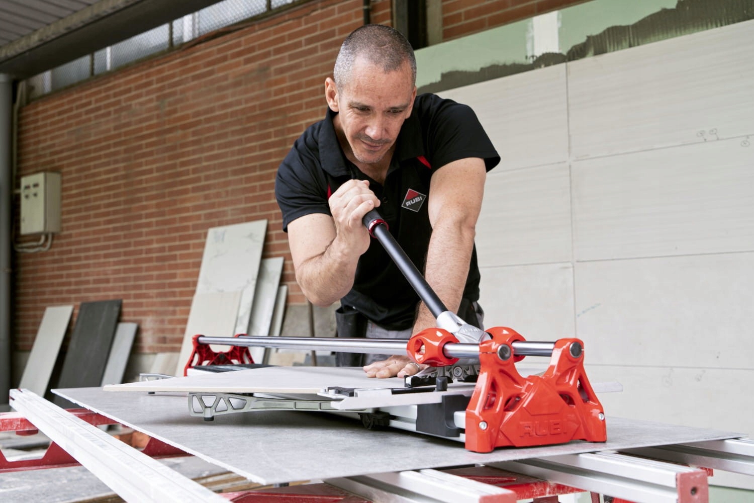 Механизм прерывателя оснащен революционной системой RUBI MAGNET, которая позволяет блокировать и разблокировать стержень для резки и раскалывания плитки одной рукой. При этом обеспечивает большую скорость и удобство работы с плитками большого формата.