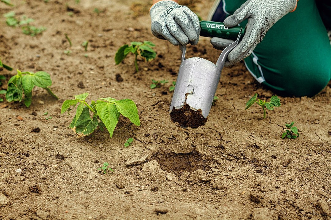 verto Ручной плантатор 15G426 предназначен для преувеличивания растений вместе с почвой и корневой системой и размещения в отверстиях в почве растений в почве. Проезд позволяет резать и сбрасывать их в желаемое место.