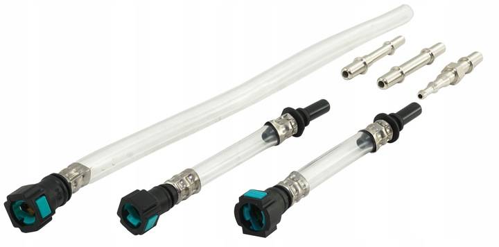 Для чистого и прямого откачивания из автомобиля и бака используются различные переходники для шлангов. Разъемы для автомобилей PSA/VAUXHALL/OPEL и два универсальных разъема для старых автомобилей.