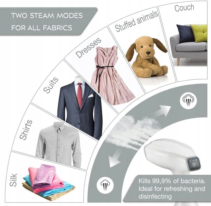 - гарантированная горячая пара , которая эффективно удаляет ароматы из одежды.