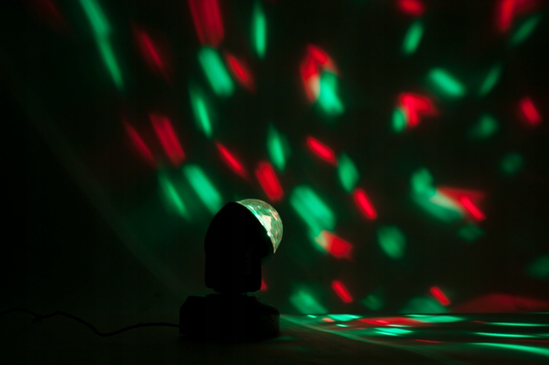 Световые лучи сильные, цвета четкие. Легкий, простой в управлении прожектор идеально подходит для диджейского и анимационного оборудования, а также для освещения небольших помещений, танцполов, дискотек и т. д.