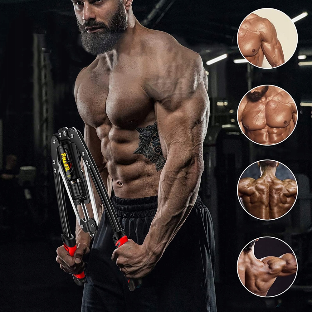 💪【Регулируемый диапазон от 10 до 200 кг】 Просто нажмите кнопку, чтобы легко отрегулировать силу от 10 до 200 кг, подходит для разных уровней подготовки, каждый уровень соответствует разному сопротивлению. Вам необходимо адаптировать сопротивление к своему физическому состоянию/уровню мышц. Он более удобен в использовании, чем традиционное силовое оборудование для пружинных рук.