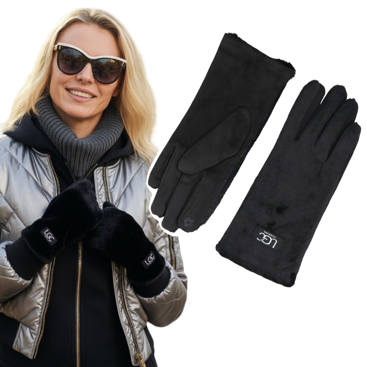 РУКАВИЧКИ ЖІНОЧІ чорні СЕНСОРНІ ДЛЯ СМАРТФОНА зимові ЕКОЗАМШ ХУТРО