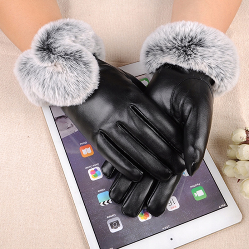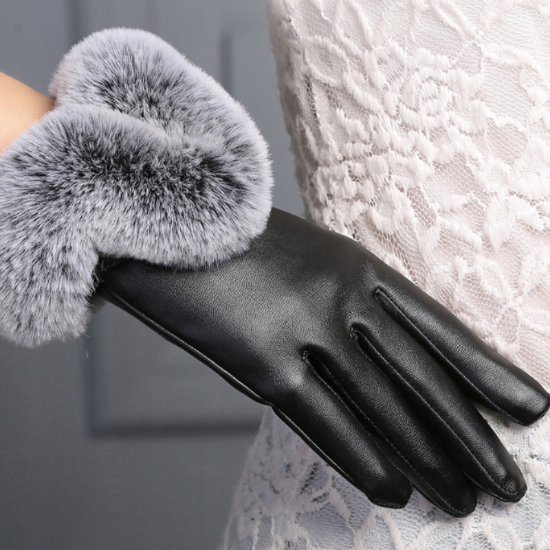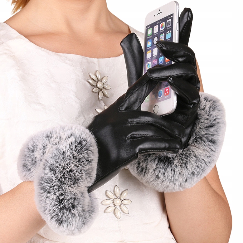 ПЕРЧАТКИ ЗИМНИЕ УТЕПЛЕННЫЕ ЖЕНСКИЕ С МЕХОМ, ТЕНСИВНАЯ ЭКО-КОЖА, ЧЕРНЫЕ