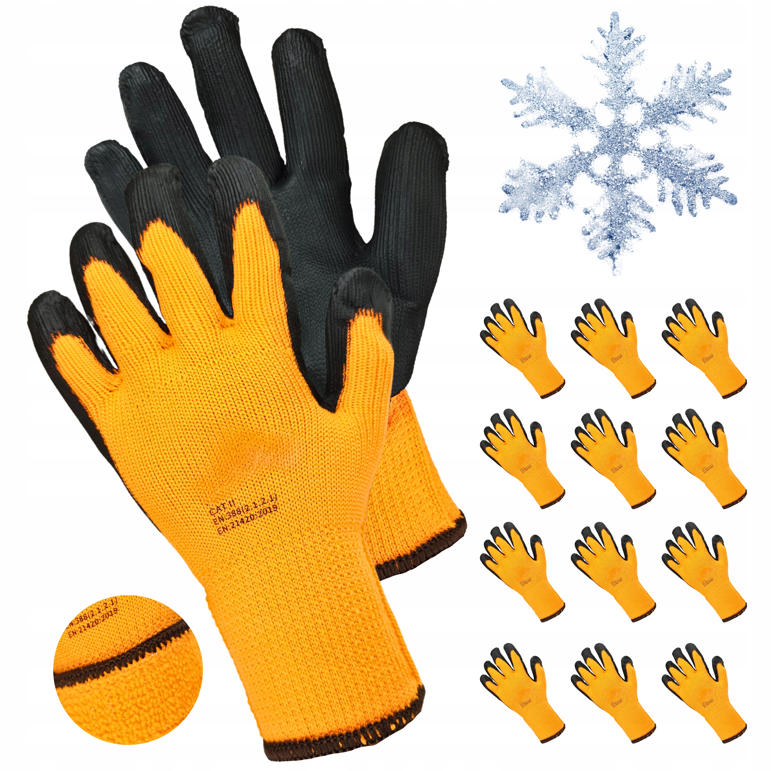 ⭐️ПЕРЧАТКИ РАБОЧИЕ УТЕПЛЕННЫЕ ЗИМНИЕ ТЕПЛЫЕ защитные перчатки OHS латексные мужские и женские перчатки оранжевого и черного цвета, модель ЗИМА, размер ⭐️11⭐️ (12 пар)