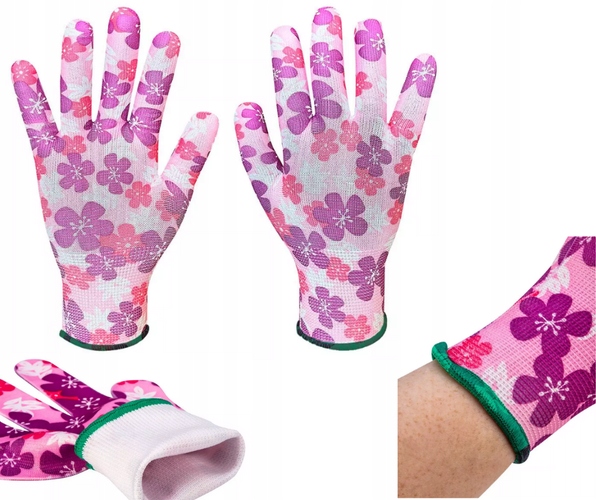 САДОВЫЕ ПЕРЧАТКИ ИЗ ПОЛИЭСТЕРА С ЦВЕТОЧНЫМ УЗОРОМ РАЗМЕР 7 VERTO