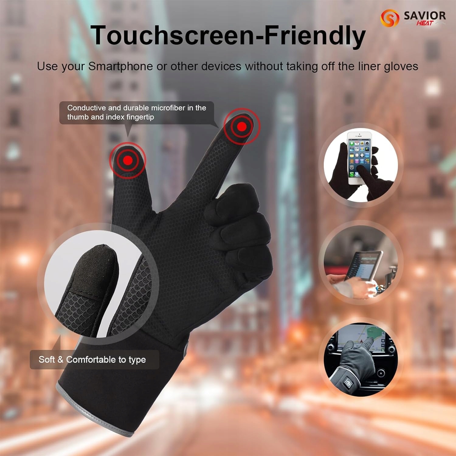 SAVIOR HEAT с подогревом внутренние перчатки мужские и женские, электрические, перезаряжаемые, термостойкие, тонкие перчатки для зимнего катания на лыжах, вождения, езды на велосипеде, походов