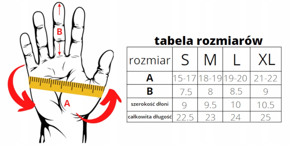 Перчатки доступны в размерах: S, M, L, XL, XXL.