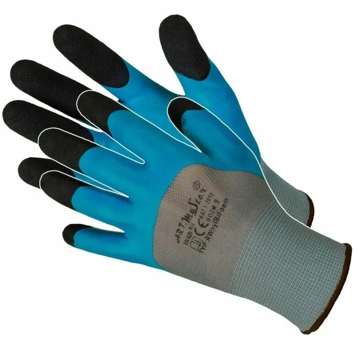 Трикотажные перчатки из полиэстера серого цвета с покрытием из вспененного латекса с гладкой фактурой синего цвета (3/4 площади перчатки). Резиновая структура обеспечивает превосходную маневренность и очень хорошее сцепление. Повышенная долговечность вспененного латексного покрытия по сравнению со стандартным. На кончиках пальцев шероховатость, что обеспечивает максимальную ловкость использования. Эластичный и гибкий. Прочный, устойчивый к истиранию и разрыву. Закончено шнурком. Покрытие, использованное в перчатке, обеспечивает надежный захват удерживаемого инструмента, ограничивает скольжение удерживаемого предмета и уменьшает проникновение грязи. Они соответствуют стандарту CE EN 420:2003+A1:2009. Размер: 9 (L) ПОЛЬСКИЙ ПРОДУКТ