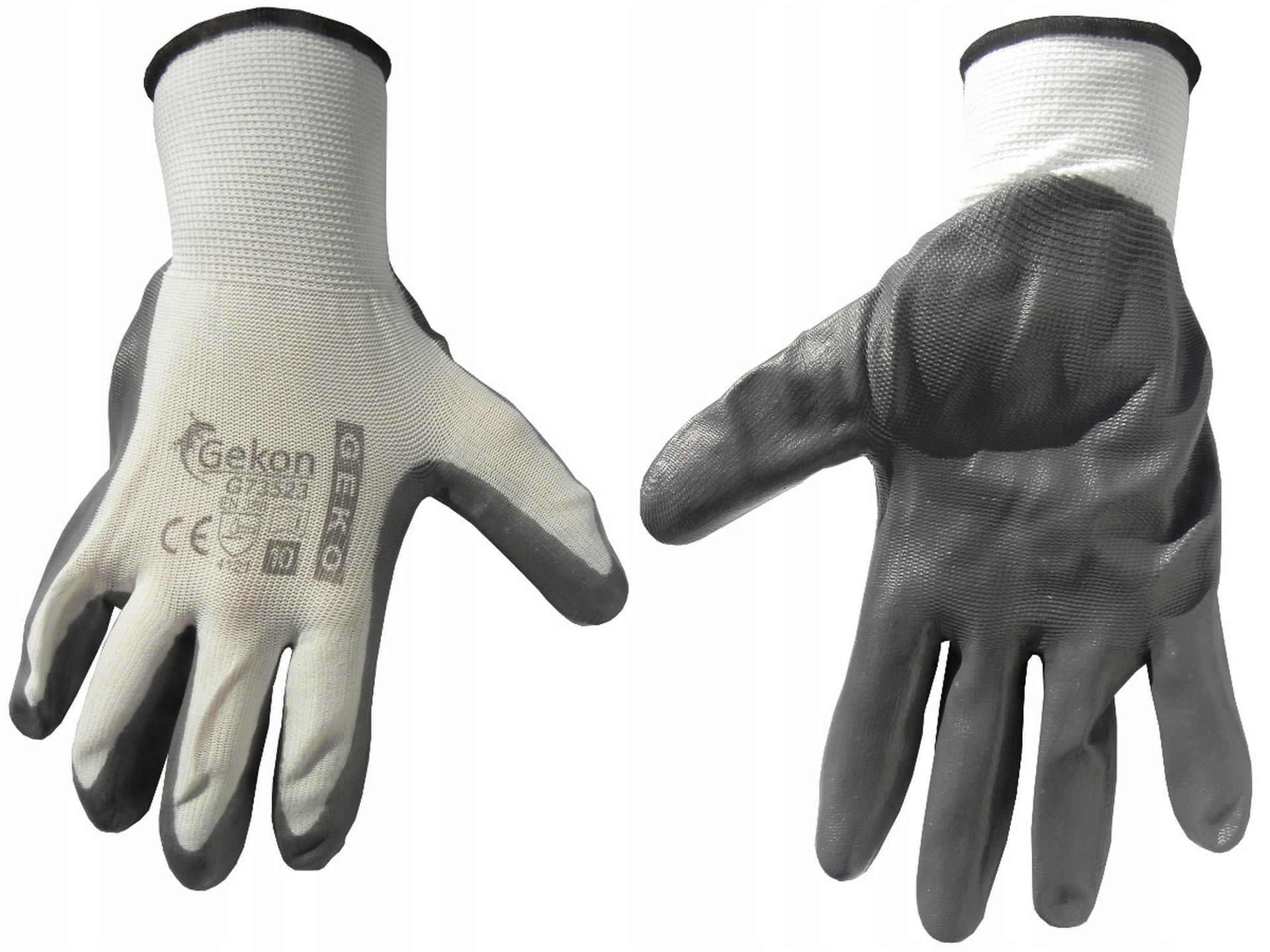 Размер рабочих перчаток с нитриловым покрытием (белых и серых). 10