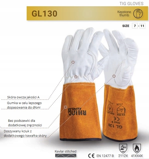 КОЖАНЫЕ ПЕРЧАТКИ ДЛЯ СВАРКИ TIG RHINOWELD GL130, РАЗМЕР 10–XL