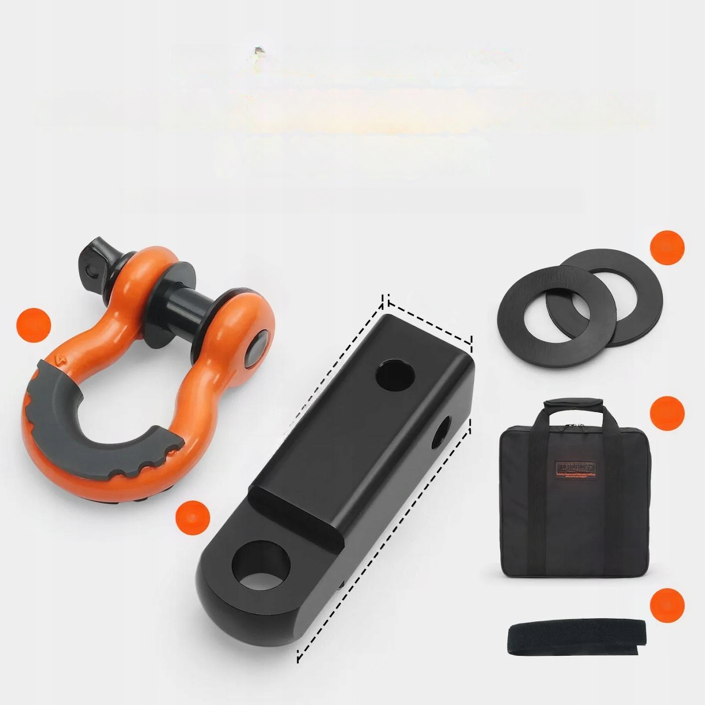 Набор включает в себя два прочных монтажных кольца типа D с максимальной прочностью для разрыва 41887 фунтов и 2 -дюймовый разъем. Полный набор аксессуаров позволяет легко и безопасно буксировать в разных условиях.