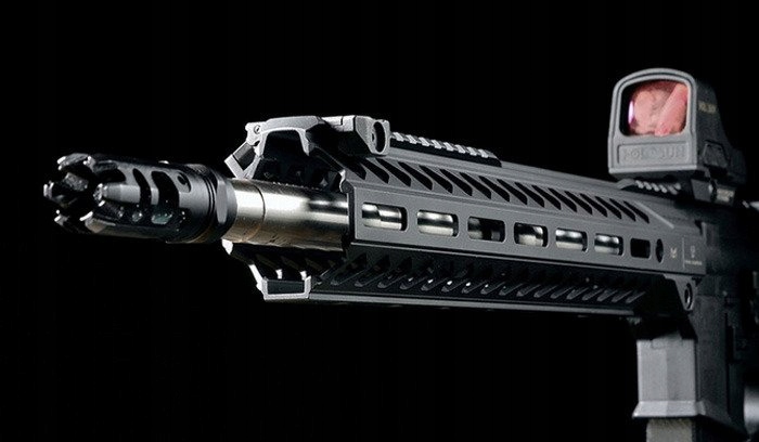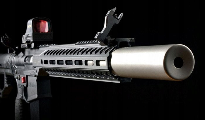 Отверстия для портов QD, расположенные с обеих сторон, позволяют использовать подвесы с системой быстрого разъединения. Внутренний диаметр рукоятки был выбран с учетом большинства стандартных глушителей, а также дульного устройства Oppressor, разработанного Strike Industries. Более того, рельсовая система позволяет легко устанавливать как механические, так и оптоэлектронные прицелы.