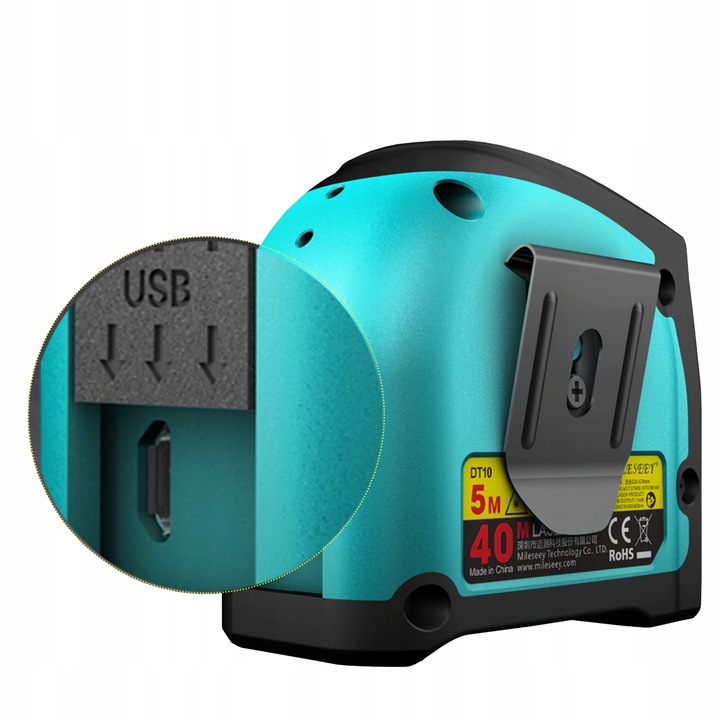 Устройство питается от встроенного литиевого аккумулятора. Дальномер оснащен входом micro USB, который используется для зарядки от сети или через USB-порт компьютера.