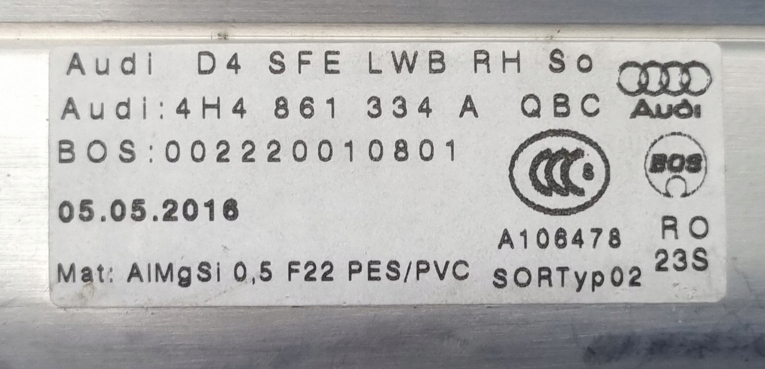 Рулонна шторка правої двері Audi A8 D4 Long Lift 4H4861334A
