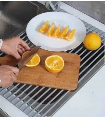 Сушилка в виде свернутого коврика – очень полезный гаджет на кухне. Сушилка изготовлена таким образом, что ее можно свободно свернуть и хранить, когда она не используется. В сложенном виде занимает очень мало места. Сушилка очень функциональна. Идеально подходит для мытья фруктов и овощей или сушки посуды. Вода капает в раковину, и посуда высыхает в мгновение ока. Сушилку очень легко содержать в чистоте. В нем нет ненужных уголков и щелей – его достаточно прополоскать и протереть или оставить сохнуть. Складная сушилка разработана для кухонь различных стилей, как современных, так и классических.