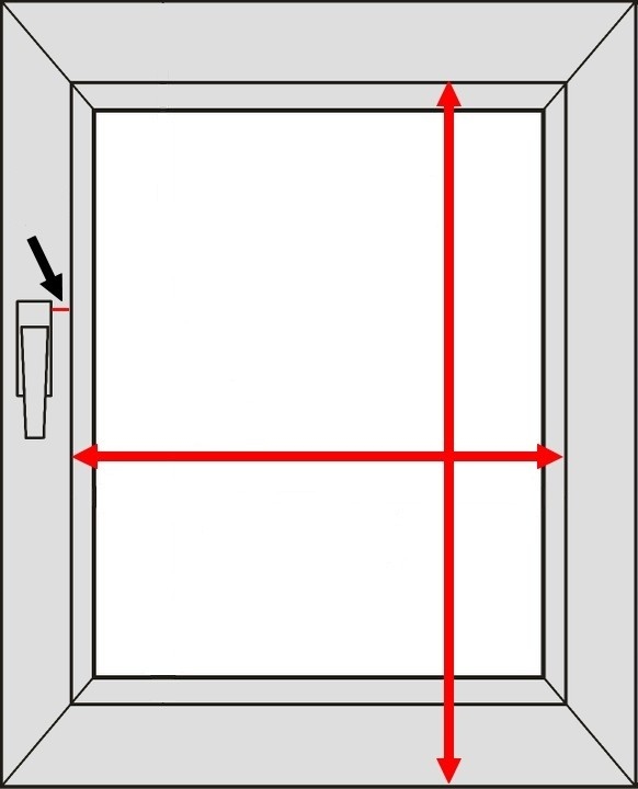 расстояние, указанное черной стрелкой D - расстояние между ручкой и штапик (данный размер необходим в том случае, когда штапик не прямоугольной формы и нет возможности приклеить направляющие к штапику).