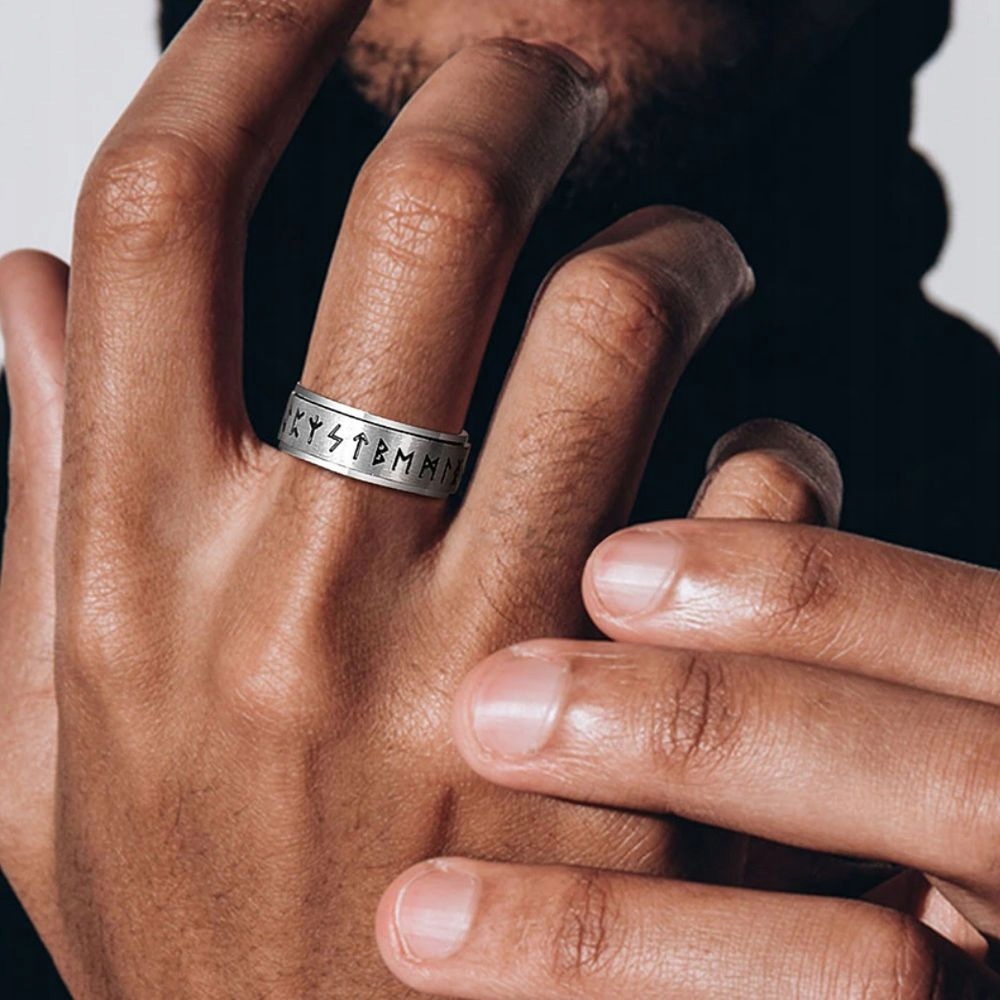 ✅Обручальное кольцо имеет поворотный элемент с матовый финиш, обогащенный символическим руническим алфавитом, то есть так называемым руны, которые играют важную роль в скандинавской мифологии.