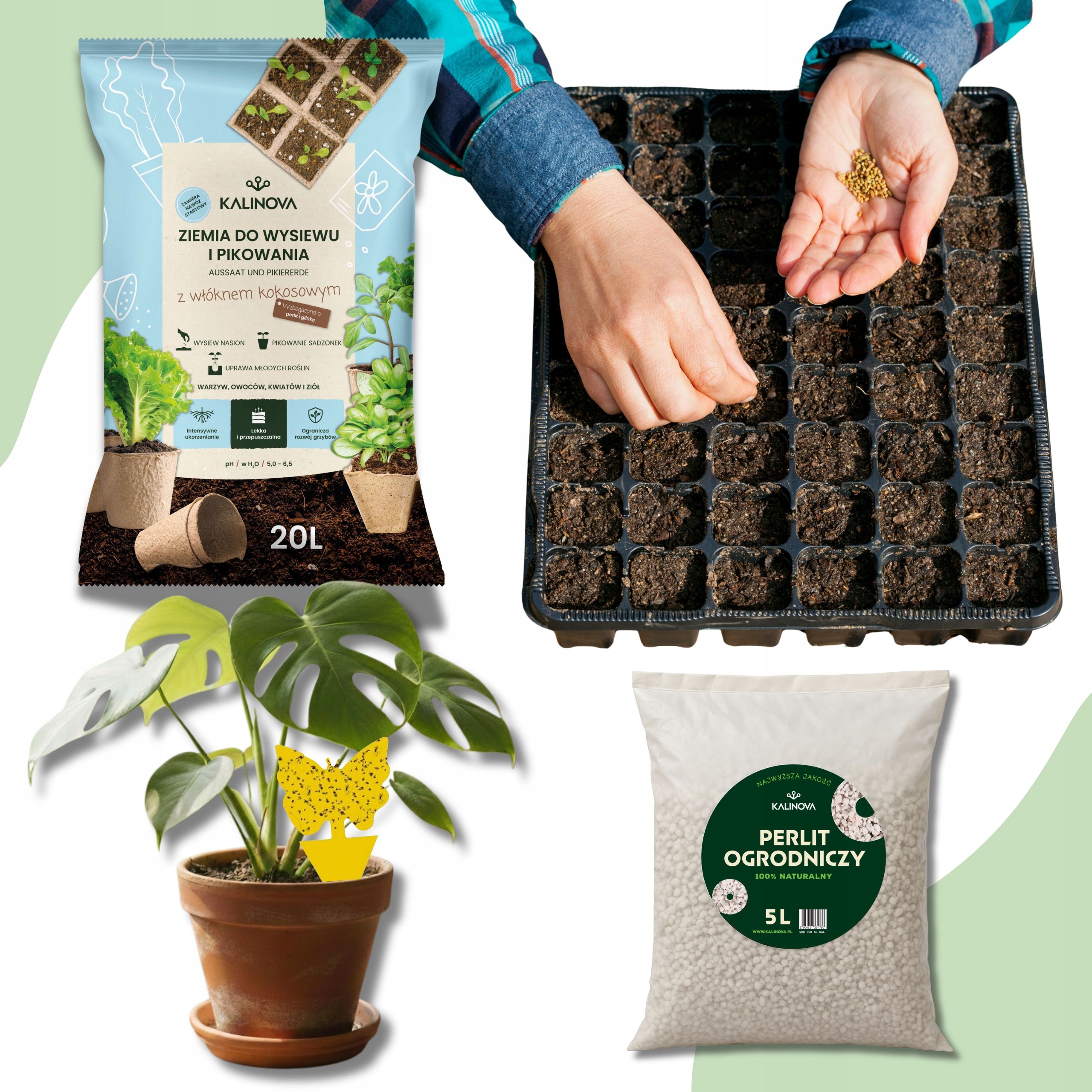 Почва для посева 20л + Перлит дренажный 5л + Палочки из желтой глины 2 шт.