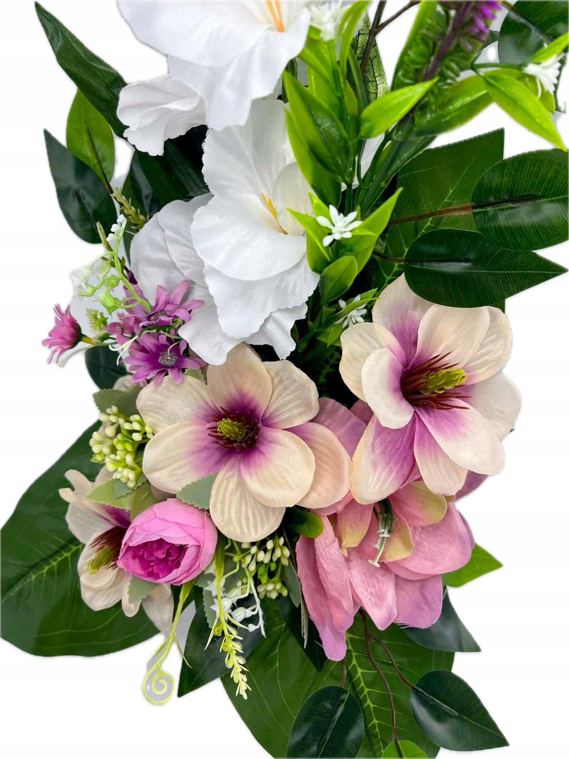 БУКЕТ В ВАЗЕ ДЛЯ КЛАДБИЩА, КРЕМОВЫХ И РОЗОВЫХ ЦВЕТОВ И НАСОКОЙ ЗЕЛЕНОЙ РАСТИТЕЛЬНОСТИ. ВЫСОКОЕ КАЧЕСТВО С ВНИМАНИЕМ К КАЖДОЙ ДЕТАЛИ