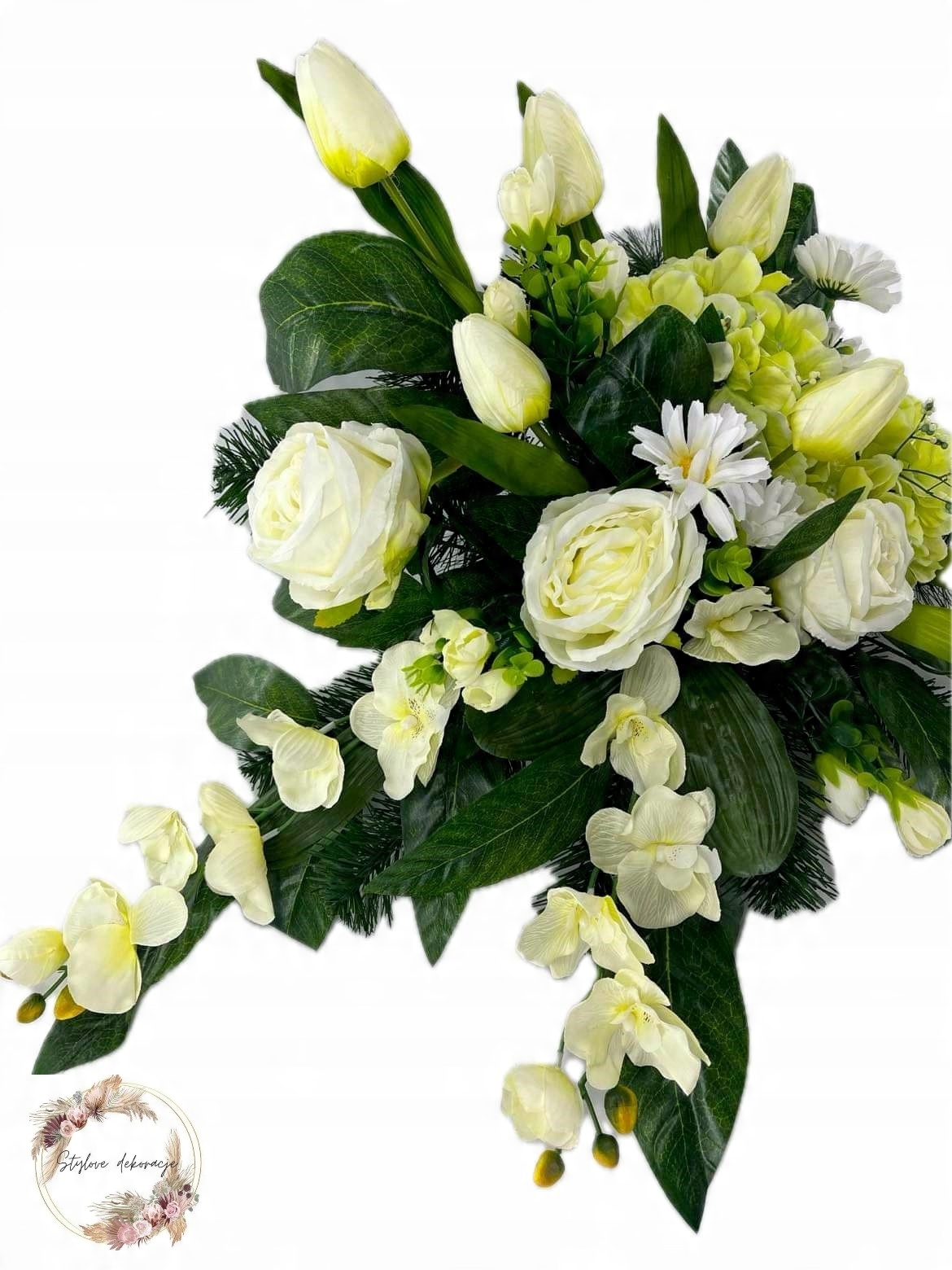 НАБОР ДЛЯ КЛАДБИЩА, КРЕМОВЫЕ И ЗЕЛЕНЫЕ ЦВЕТА И НАСОКАЯ ЗЕЛЕНАЯ РАСТИТЕЛЬНОСТЬ. ВЫСОКОЕ КАЧЕСТВО РАБОТЫ С ВНИМАНИЕМ К КАЖДОЙ ДЕТАЛИ