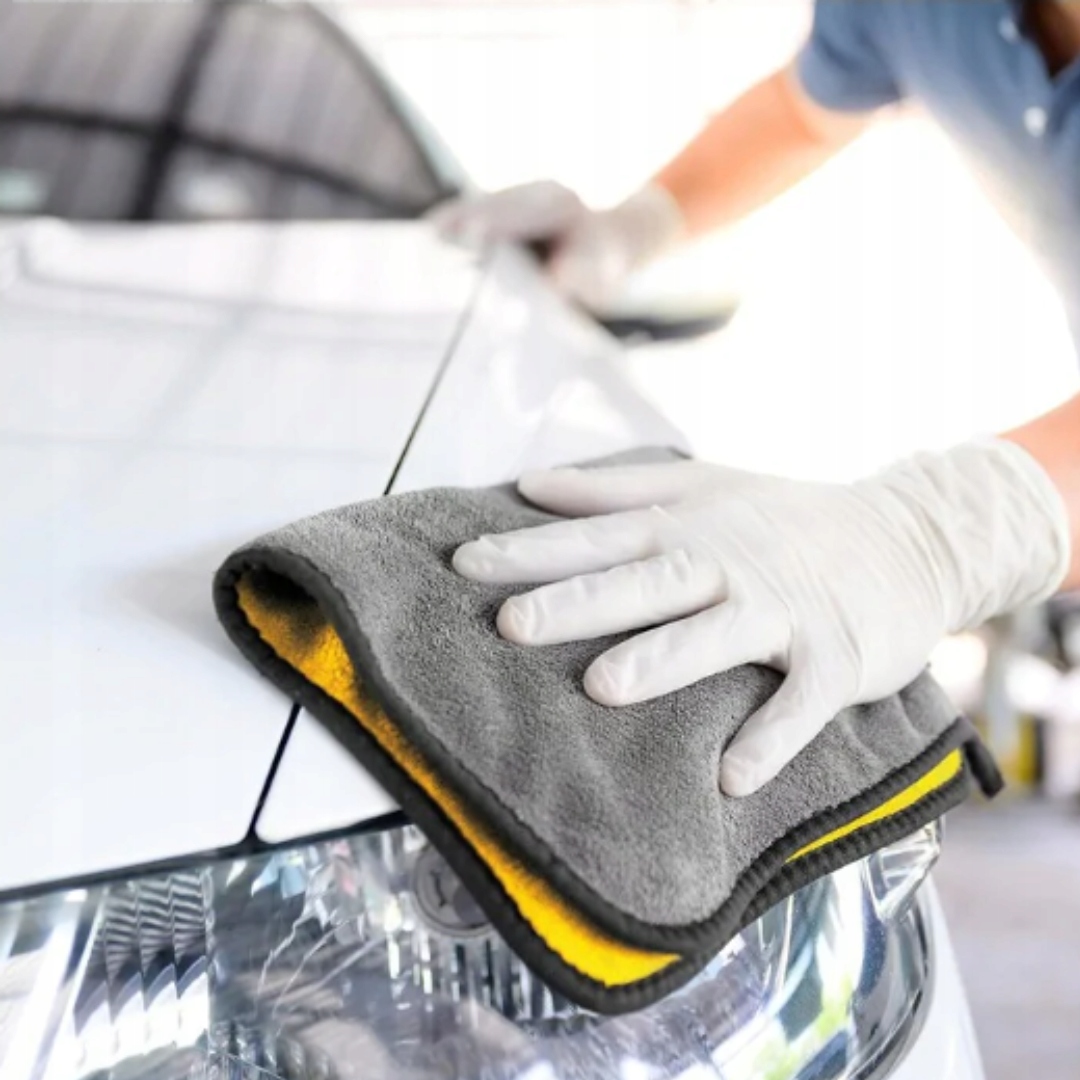 Полотенце изготовлено из высококачественного материала, который идеально поглощает воду, не оставляя полосы на автомобильном лаке. абсорбент.
