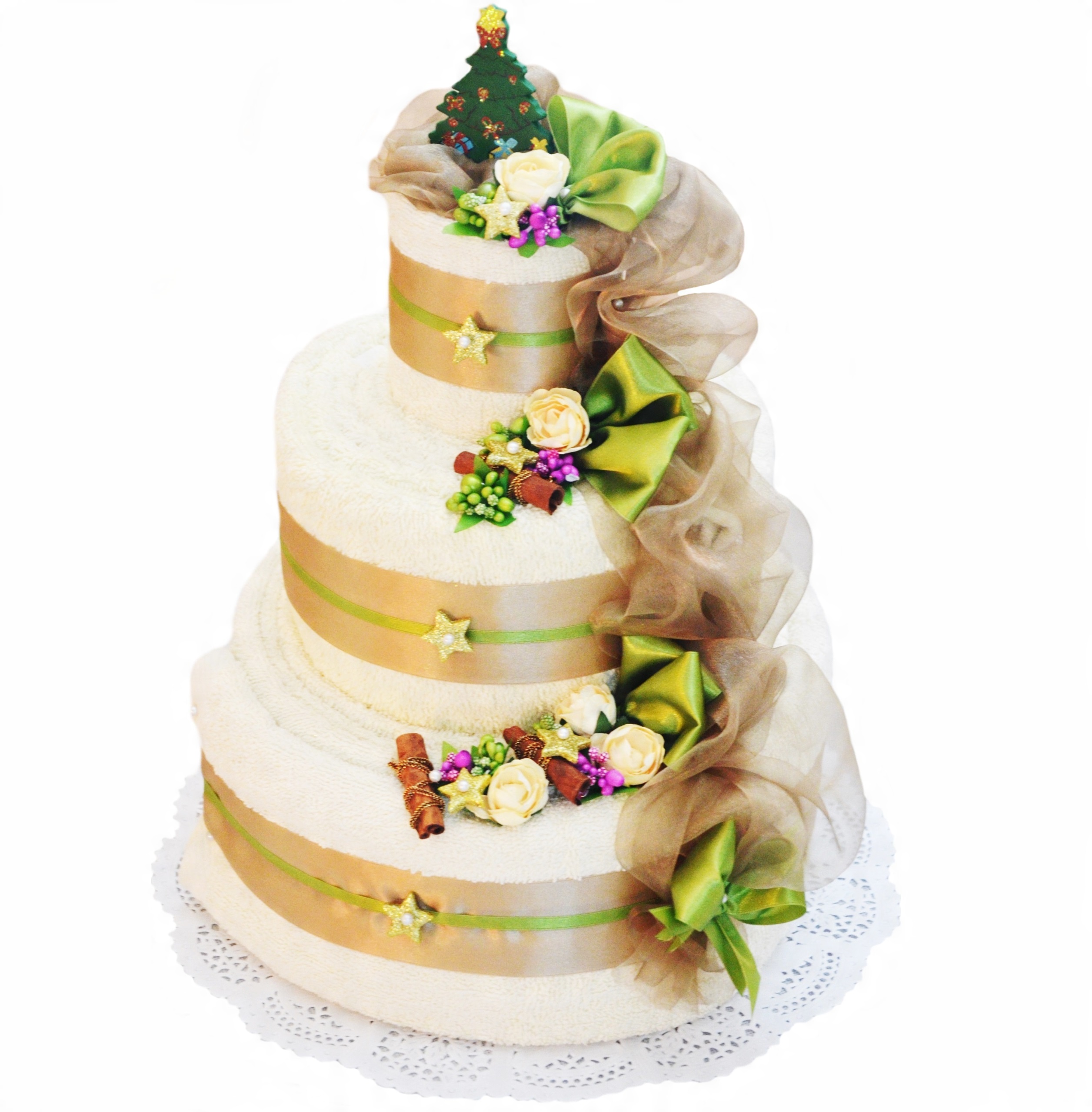 Красивый и практичный новогодний подарок — полотенца, свернутые в елку. Идеальный рождественский подарок для родителей, бабушек и дедушек, братьев и сестер, друзей.