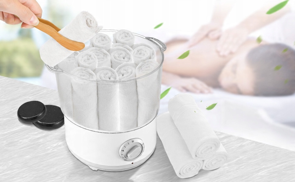 - Массажные камни (стандартное время 5 минут), ароматические обертывания (5–8 минут) и горячие полотенца (держатель для полотенец вмещает 4–6 маленьких полотенец или 3–4 средних полотенца).