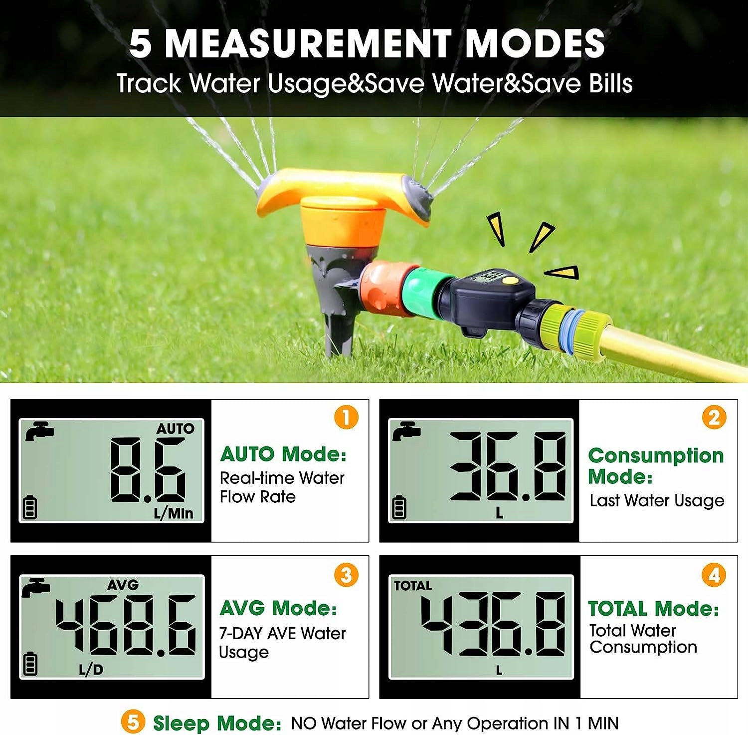 Умный счетчик воды для садового шланга измеряет расход воды и скорость потока, помогает точно расходовать воду и экономить деньги. С помощью нашего цифрового счетчика воды вы можете измерить количество галлонов воды, необходимое для полива ваших растений и наполнения резервуара для автофургона или небольшого бассейна.