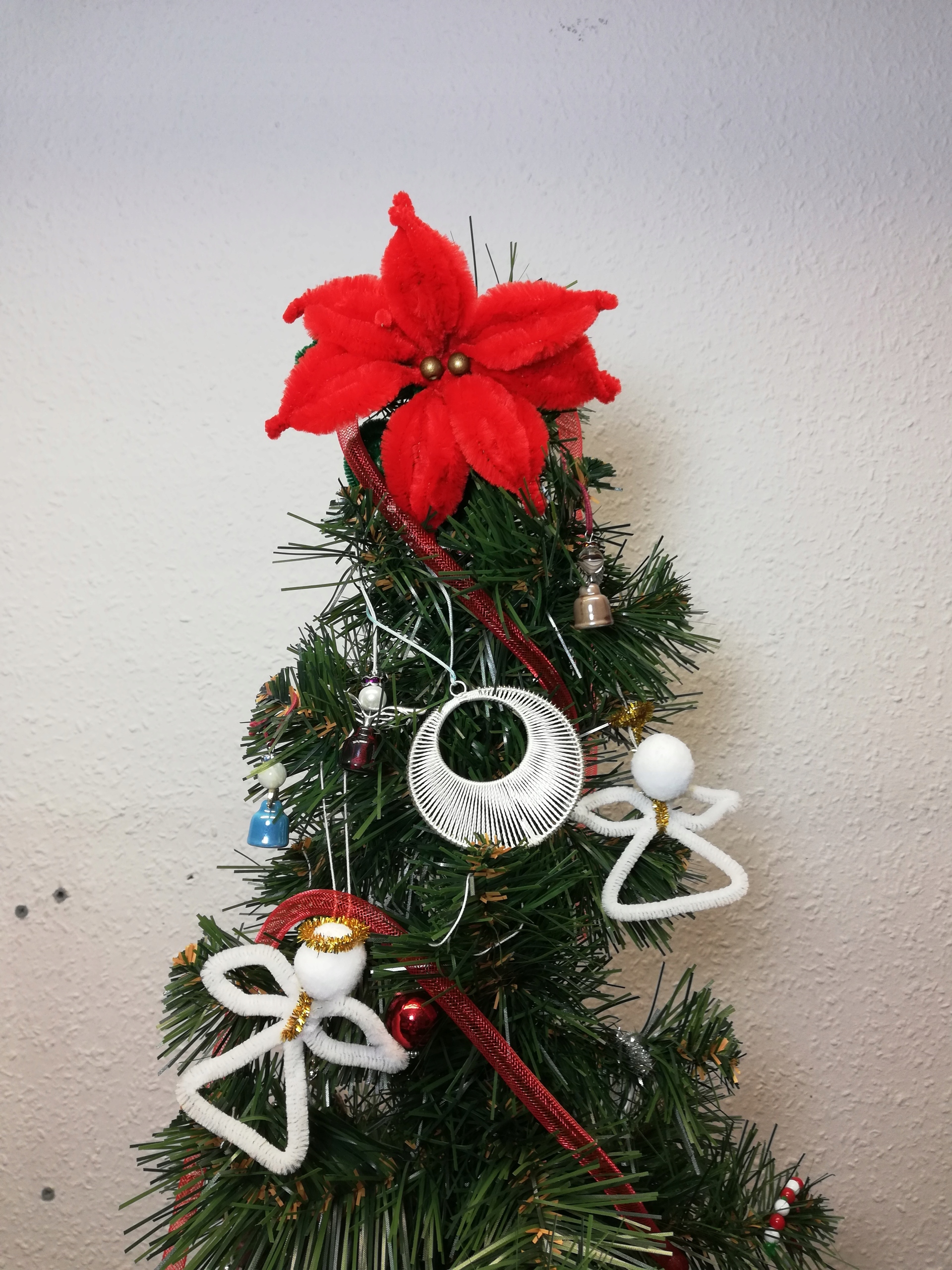 Вифлеемская звезда из креативной проволоки ДТ-048 и золотых стержней ПТ-261. Бело-золотые ангелочки из креативной белой проволоки ДТ-001 и металлизированной проволоки ДТ-029, голова из помпона.