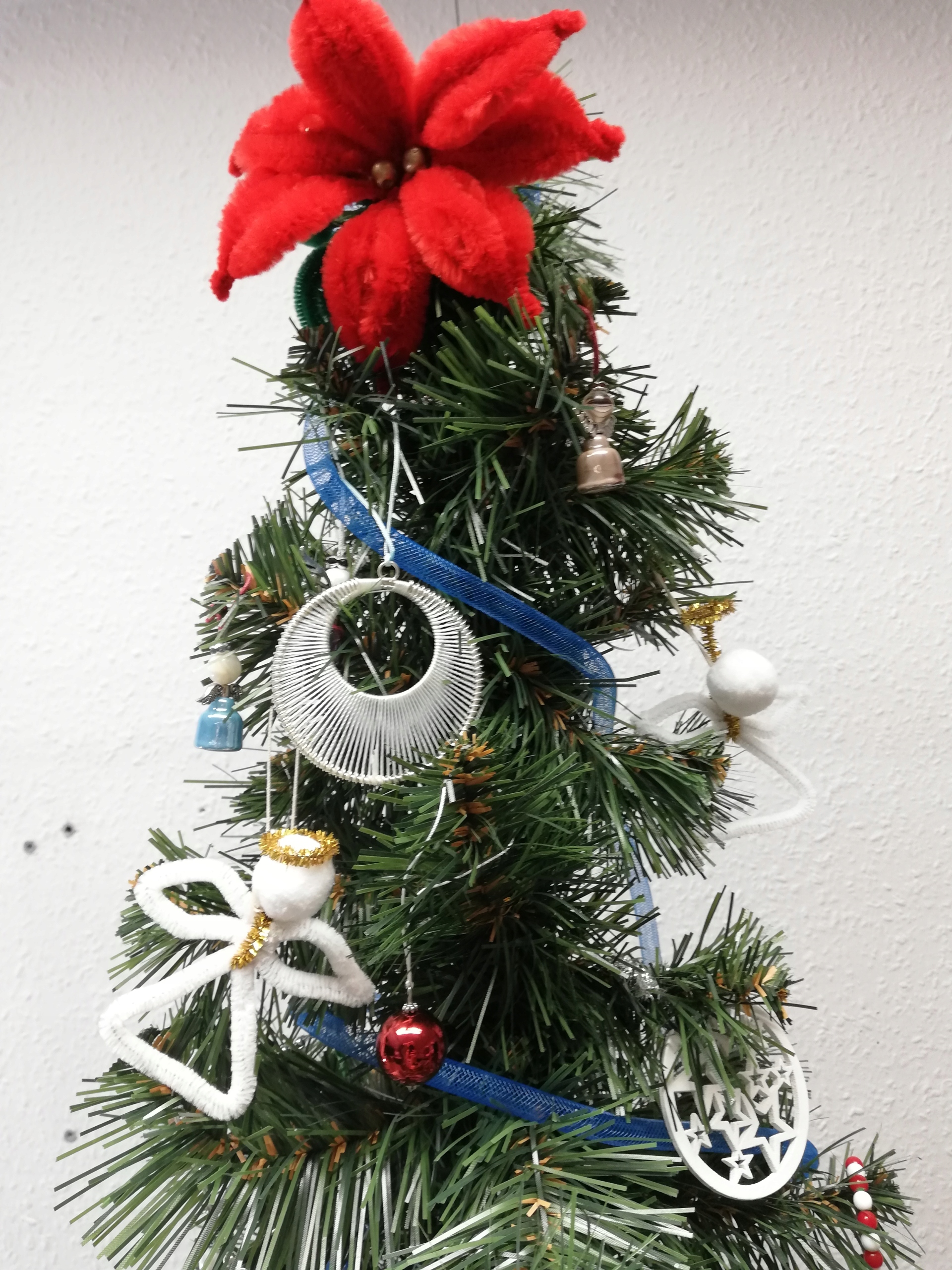 Вифлеемская звезда из креативной проволоки ДТ-048 и золотых стержней ПТ-261. Бело-золотые ангелочки из креативной белой проволоки ДТ-001 и металлизированной проволоки ДТ-029, голова из помпона.
