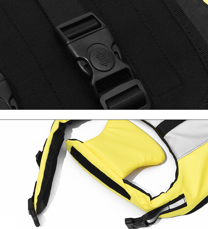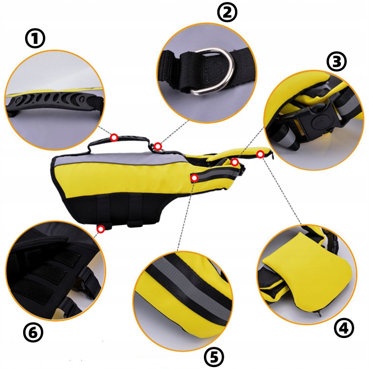Наши спасательные жилеты изготовлены из оксфордской ткани и нейлона рипстоп, а также хлопковой пены высокой плотности с перламутровым эффектом, что обеспечивает вашей собаке дополнительную плавучесть во время плавания. Наши спасательные жилеты также обеспечивают комфорт передвижения и не ограничивают передвижение по суше. Они также оснащены прочными пряжками и ремнями, которые позволяют легко подогнать их под собак разного размера.