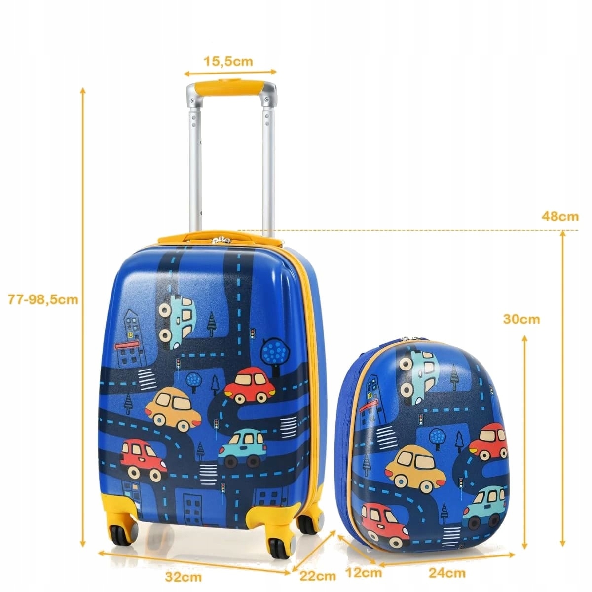 Вам интересно, как упаковать багаж вручную для детей? Наши чемоданы адаптированы к требованиям авиакомпании и идеально подходят в качестве ручного багажа. Чутак с рюкзаком для путешествий хранится в приятном стиле мультфильма, представляющих улицу и машины. Оба элемента набора имеют жесткий внешний слой, эффективно защищая содержание. В чемодане и рюкзаке будет много места для детской одежды, книг, игрушек и многих других. Кроме того, чемодан имеет боковой карман, закрепленный на молнии, идеально подходит для сегрегации объектов. Благодаря 4 вращающимся колесам и регулируемой ручке и возможности прикрепления рюкзака, весь набор легко перемещать даже для ребенка