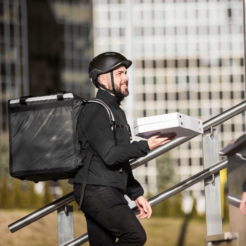 Легкая сумка для транспортировки пищевых продуктов: прочная, но легкая, расположена на сзади водителя.