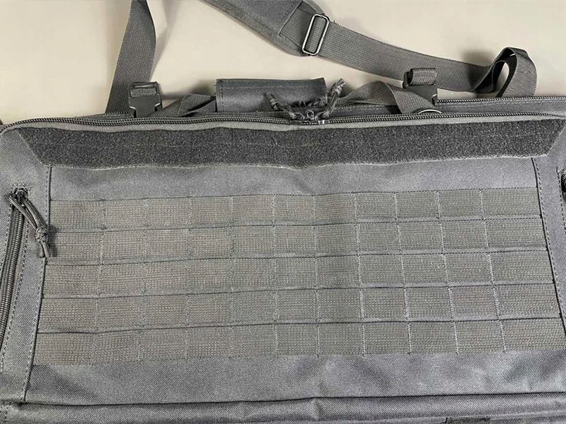 Предлагаемый чехол изготовлен из прочного и водонепроницаемого нейлона Oxford 600D. В большом основном отделении можно разместить два карабина с внутренними системами крепления, предотвращающими скольжение оружия. Наружные стенки патронника заполнены жёсткой пеной для защиты оружия от повреждений при транспортировке.