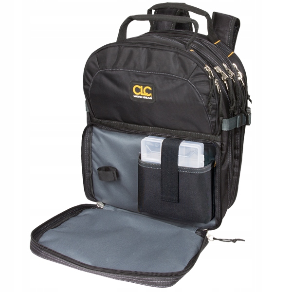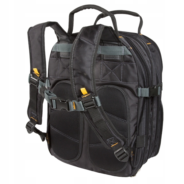 Высококачественный универсальный рюкзак изготовлен из прочной баллистической полиэфирной ткани с прочными молниями и мягкими мягкими лямками. Оснащен многосекционным пластиковым лотком для деталей и 75 карманами и карманами для хранения широкого спектра ручного и электроинструмента: набора гаечных ключей 14 шт, электродрели, дрелей, плоскогубцев, отверток, тестеров и прочего.