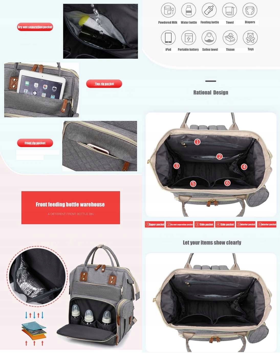 РЮКЗАК ДЛЯ МАМІ ОРГАНІЗАТОР СУМКА ПІДПЛАННЯ ЛІЖКА