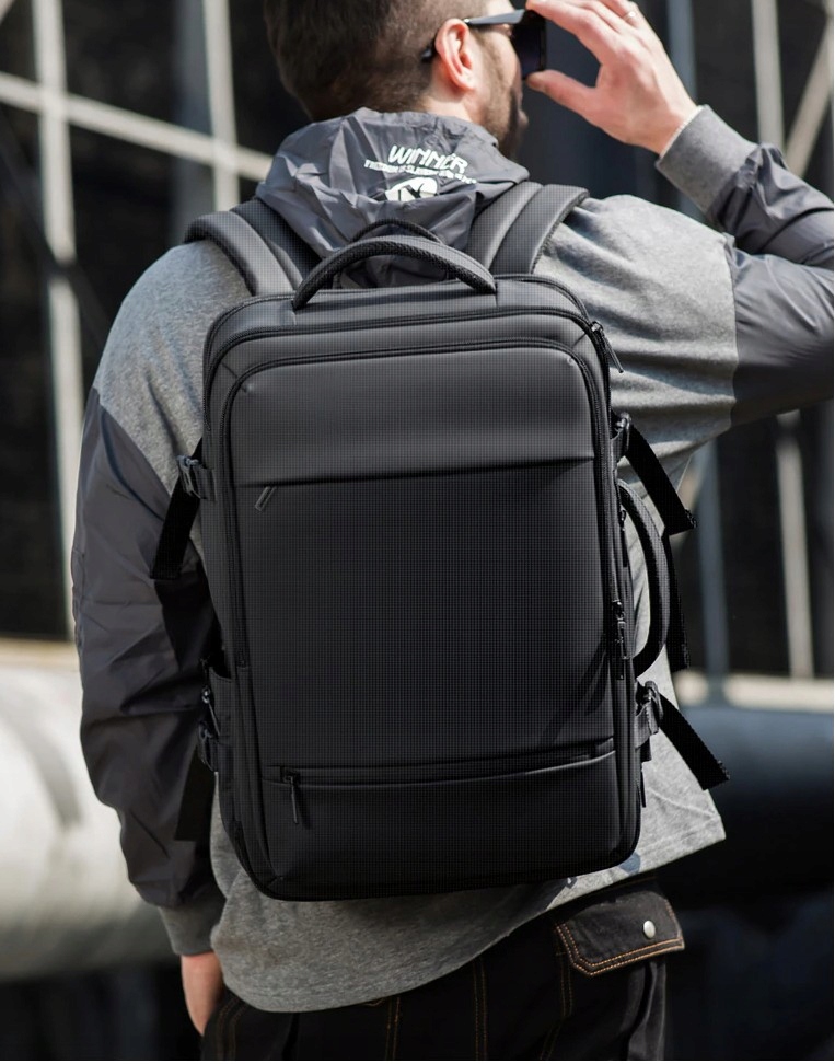 Рюкзак можно сложить, как чемодан. Это облегчает упаковку, а одежду, помещенную в отделение, можно легко закрепить с помощью сетчатого клапана на молнии. Таким образом, вы не будете бояться, что ваша одежда выпадет, когда вы захотите что-то достать из рюкзака.