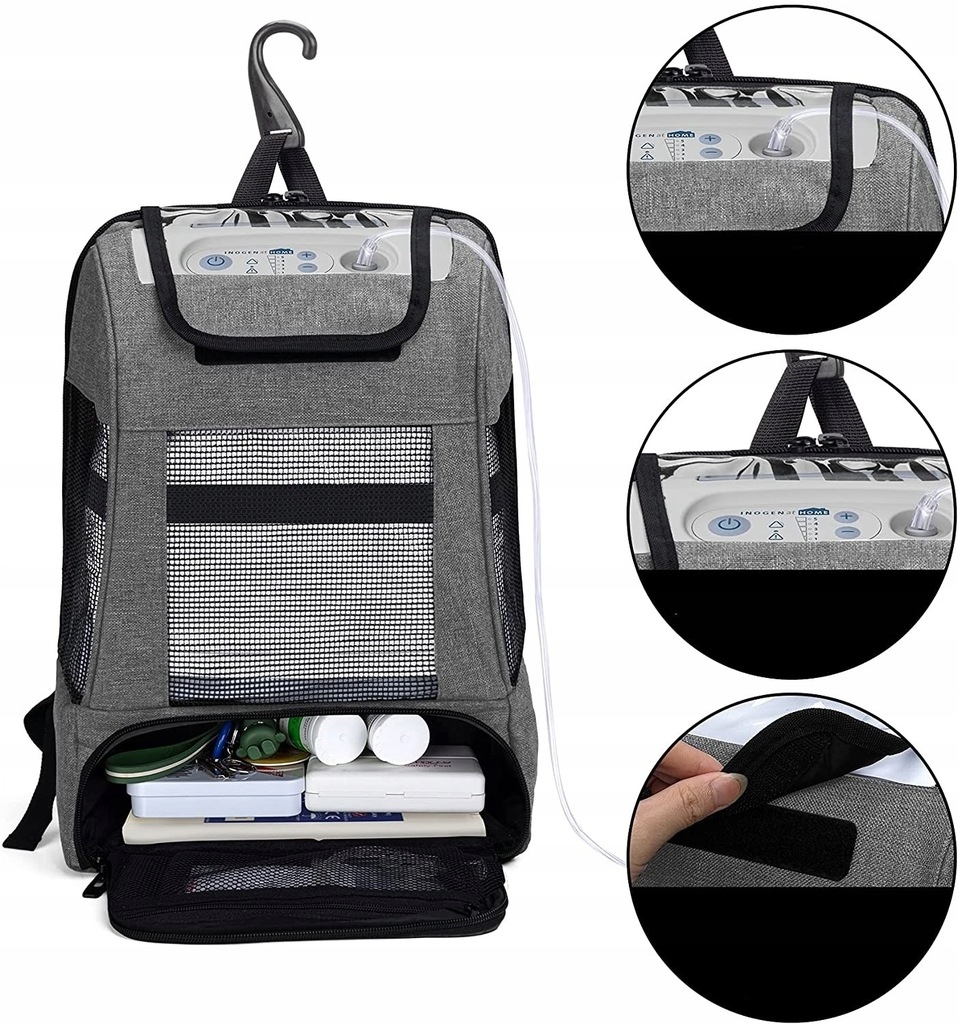 Размеры 24,9 x 9,4 x 40,6 см. Этот портативный кислородный рюкзак совместим с Inogen One G3, Inogen One G4, Inogen One G5, Philips Respironics SimplyGo Mini, OxyGo, OxyGo FIT, OxyGo NEXT и Caire FreeStyle Comfort Unit. Внутренняя клейкая лента позволяет удерживать портативное кислородное оборудование на месте (запатентованная конструкция)