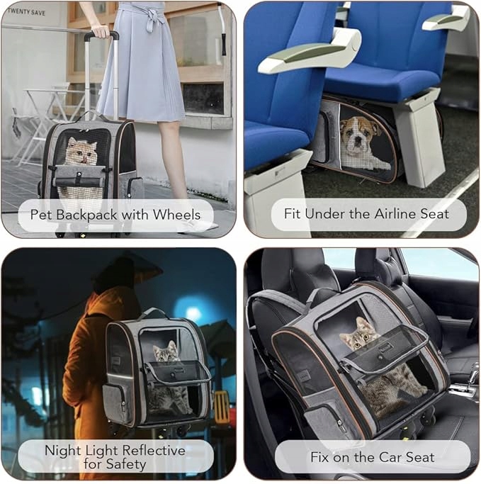 - Универсальный рюкзак для кошек и собак с коляской 2 в 1]. Эта сумка для переноски кошки на колесах может быть превращена в рюкзак для домашних животных, что делает путешествие с домашними животными. Размеры рюкзака: 30 x 28 x 42 см (без колес). Рекомендуется для домашних животных до 8 кг. Это разрешено большинством авиакомпаний, но перед отъездом проверьте рецепты вашей авиакомпании. Тролляж собаки также оснащен изношенным ремнем и регулируемым плечевым ремнем для легкой тяги и скольжения. Платформа безопасно прикреплена с высоким качеством липучки, в то время как колеса легко установить или разобраться. обе страницы; Он оснащен уютным ковриком, где домашнее животное может лежать комфортно. Внутренний ремень безопасности предотвращает побег животного. Боковая сумка для хранения угощений и игрушек. 2 боковых кармана для хранения домашних аксессуаров для животных и жалюзи, которые можно загрузить, чтобы защитить от солнца. Путешествие переносится при переносе, в лагере, во время блуждания, езды на велосипеде, ветеринарных посещений или прогулок в парке. Циркуляция, 4 входа (по бокам, спереди и сзади) позволяют вашему питомцу использовать внешний ландшафт и легко транспортировать рюкзак; [Расширение и складывание] Этот рюкзак для кошек с расширенной задней частью позволяет вашему питомцу более удобно двигаться и уменьшает беспокойство