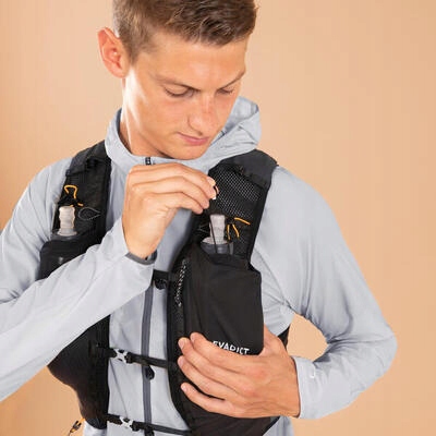 Предполагая, что во время бега мы выпиваем в среднем 500 мл воды в час, и учитывая тот факт, что этот рюкзак позволяет взять с собой 2 литра воды, жидкости у вас хватит на 4 часа. Это очень практично, не так ли? Благодаря расположенному сзади пузырю для воды емкостью 1 литр и двум передним карманам для мягких бутылочек объемом 500 мл вы можете спокойно бегать между точками питания.