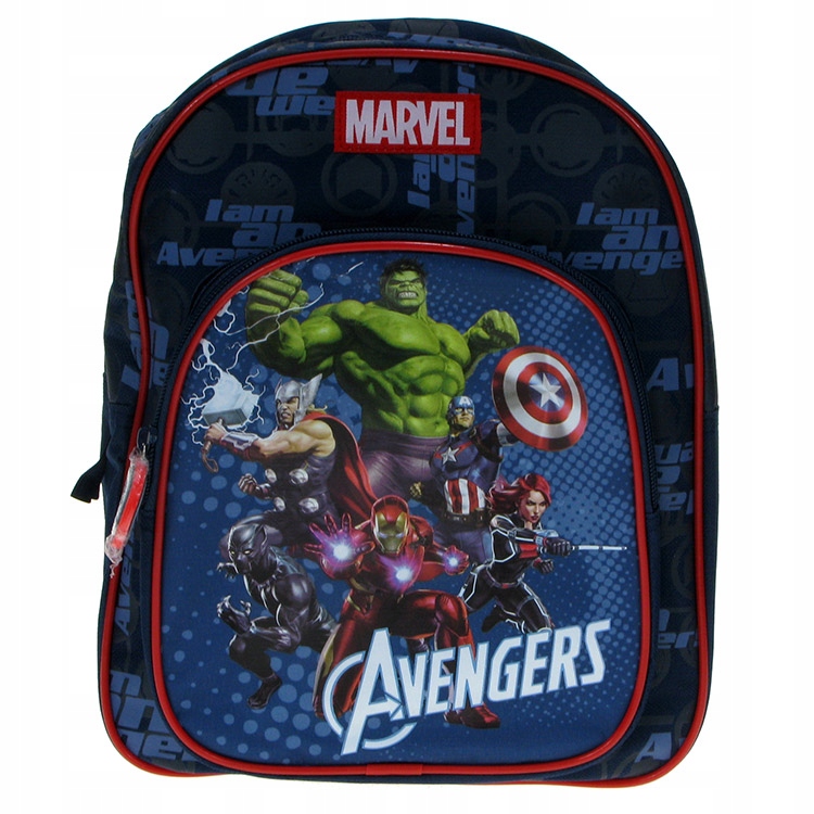 >На рюкзаке изображены герои фильмов и комиксов из сериала «Мстители». На рюкзаке Тор, Железный Человек, Капитан Америка, Халк, Чёрная Пантера и Вдова. Благодаря своему размеру и тематике рюкзак лучше всего подходит для детей детского сада. Рюкзак с большим карманом спереди.
