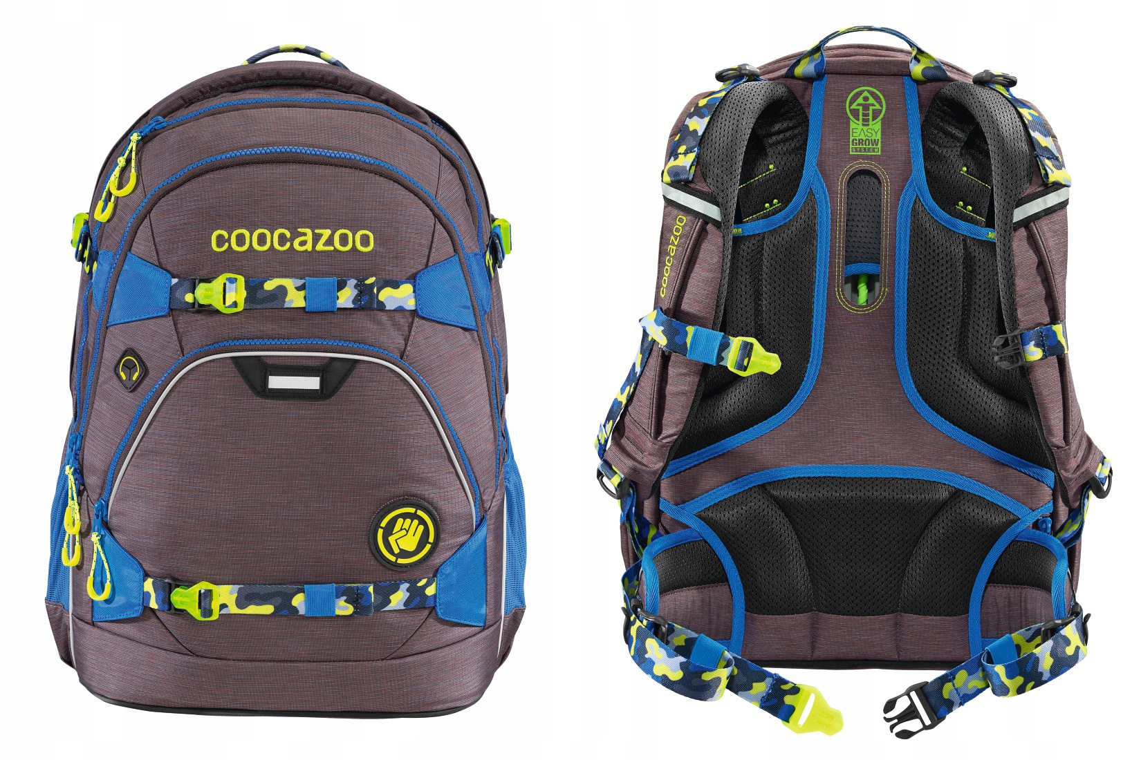 - Easy Grow, инновационный механизм, позволяющий регулировать положение ремня безопасности в соответствии с ростом ученика непосредственно на спине ребенка благодаря вращающемуся механизму. расположены внутри портфеля.