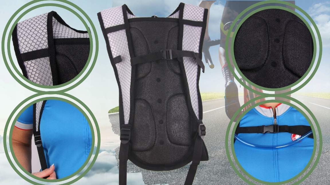 - ✅Регулируемый нагрудный ремень для стабильного прилегания во время активности. Регулируемые лямки из дышащей сетки.Форма рюкзака и лямок позволяет сохранить аэродинамический силуэт.